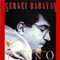 Sergei Babayan, PianoScarlatti: SonatasDomenico Scarlatti(1685-1757): 19 SonatasK.8 in G Minor (Allegro) K.454 in G Major (Andante spiritoso) K.54 in A Minor (Allegro) K.547 in G Major (Allegro) K.247 in C-sharp Minor (Allegro) K.118 in D Major (Non Presto) K.198 in E Minor (Allegro) K.79 in G Major (Allegrissimo) K.239 in F Minor (Allegro) K.45 in D Major (Allegro) K.491 in D Major (Allegro) K.17 in F Major (Presto) K.365 in F Minor (Allegro) K.445 in F Major (Allegro, ò presto) K.502 in C Major (Allegro) K.141 in D Minor (Toccata, Allegro) K.487 in C Major (Allegro) K.425 in G Major (Allegro molto) K.427 in G Major (Prestissimo) Scarlatti: Sonata